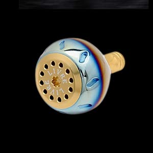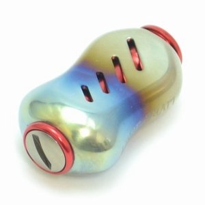リブレのリールハンドルノブで特徴的なのが、チタンを使った薄肉中空構造と青く光る焼き色です(もちろん青く光る”焼き色”がついていないシンプルなものもあります)。